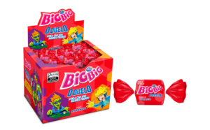 PIRULITO DURO RECHEADO COM CHICLE, SABOR ARTIFICIAL DE MORANGO – INGREDIENTES: AÇÚCAR, XAROPE DE GLICOSE, GOMA BASE, ÓLEO VEGETAL DE MILHO, ACIDULANTE ÁCIDO CÍTRICO, UMECTANTES: LACTATO DE SÓDIO E GLICERINA, AROMATIZANTES, EMULSIFICANTE LECITINA DE SOJA E CORANTE ARTIFICIAL VERMELHO 40 (INS 129). ALÉRGICOS: CONTÉM DERIVADOS DE SOJA. NÃO CONTÉM GLÚTEN. INDÚSTRIA BRASILEIRA.