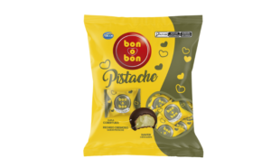 PT – BISCOITO COM COBERTURA SABOR CHOCOLATE AO LEITE COM RECHEIO SABOR PISTACHE – INGREDIENTES: AÇÚCAR, FARINHA DE TRIGO ENRIQUECIDA COM FERRO E ÁCIDO FÓLICO, GORDURA VEGETAL, LEITE EM PÓ INTEGRAL, MASSA DE CACAU, LEITE EM PÓ DESNATADO, AMIDO DE MILHO, SORO DE LEITE EM PÓ, PERMEADO DE SORO DE LEITE EM PÓ, AMENDOIM EM PASTA, XAROPE DE GLICOSE, EXTRATO DE MALTE, SAL, LEITE DE COCO, FÉCULA DE MANDIOCA, CONCENTRADO DE ESPIRULINA, COCO RALADO, ÓLEO VEGETAL DE SOJA, EMULSIFICANTES: LECITINA DE SOJA E ÉSTERES DE POLIGLICEROL COM ÁCIDO RICINOLÉICO INTERESTERIFICADO, FERMENTOS QUÍMICOS: BICARBONATO DE AMÔNIO E BICARBONATO DE SÓDIO, AROMATIZANTES E CORANTE CURCUMINA [E100(i)/INS 100(i)]. ALÉRGICOS: CONTÉM COCO E DERIVADOS, AMENDOIM, DERIVADOS DE TRIGO, SOJA, LEITE E CEVADA E PODE CONTER AVEIA, CENTEIO, AMÊNDOA, AVELÃS, NOZES, CASTANHA-DE-CAJU, CASTANHA-DO-PARÁ, PECÃS, PISTACHE E MACADÂMIA. CONTÉM LACTOSE. CONTÉM GLÚTEN. INDÚSTRIA BRASILEIRA.
