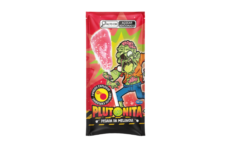 PIRULITO COM CRISTAIS EXPLOSIVOS DE BALA DURA, SABOR ARTIFICIAL DE MELANCIA. INGREDIENTES: AÇÚCAR, XAROPE DE MALTOSE, LACTOSE, REGULADOR DE ACIDEZ ÁCIDO MÁLICO (DL-), AROMATIZANTE, CONSERVANTE DIÓXIDO DE CARBONO E CORANTE VERMELHO ALLURA AC (E129/INS 129). ALÉRGICOS: CONTÉM DERIVADOS DE LEITE. CONTÉM LACTOSE. NÃO CONTÉM GLÚTEN. INDÚSTRIA CHINESA.